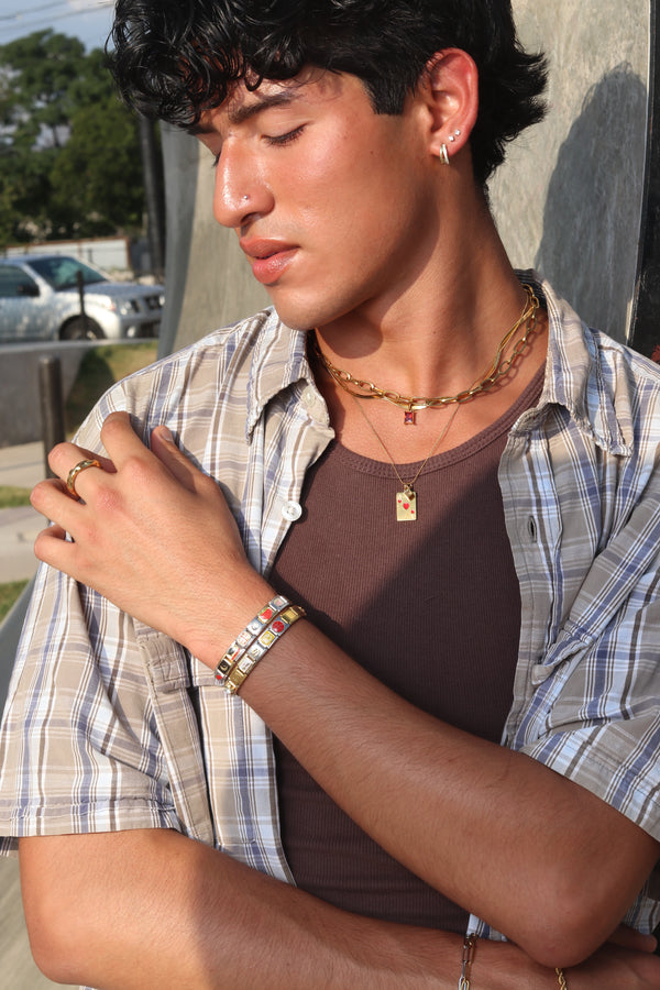 Water-resistant and tarnish-free. Made for daily wear at the gym, pool, or shower. For even longer shine, try removing the pieces when you can and avoid sleeping in them or exposing them to harsh chemicals.